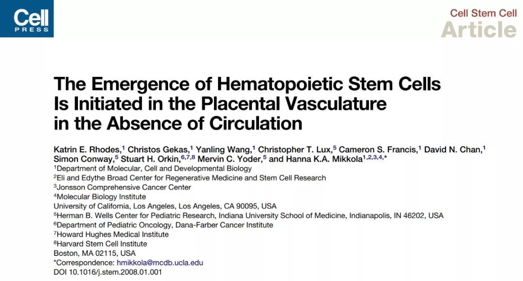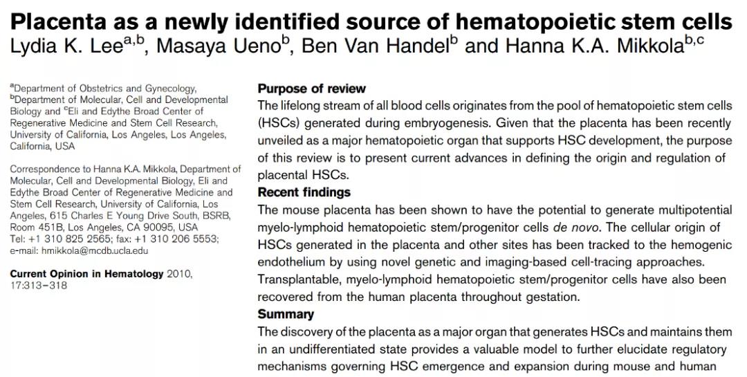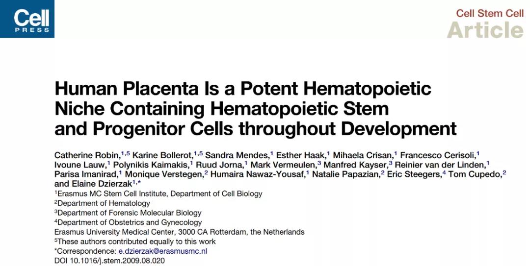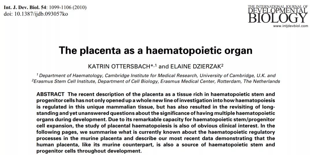 2009:胎盤在整個發(fā)育中含有造血干細胞