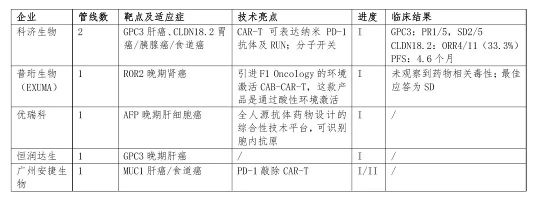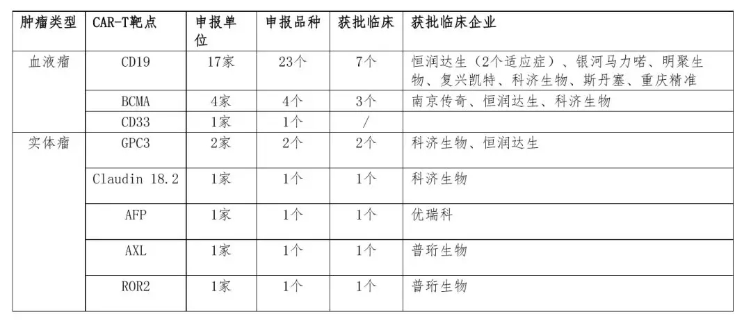 表6 國內獲得實體瘤CAR-T臨床批件的企業(yè)