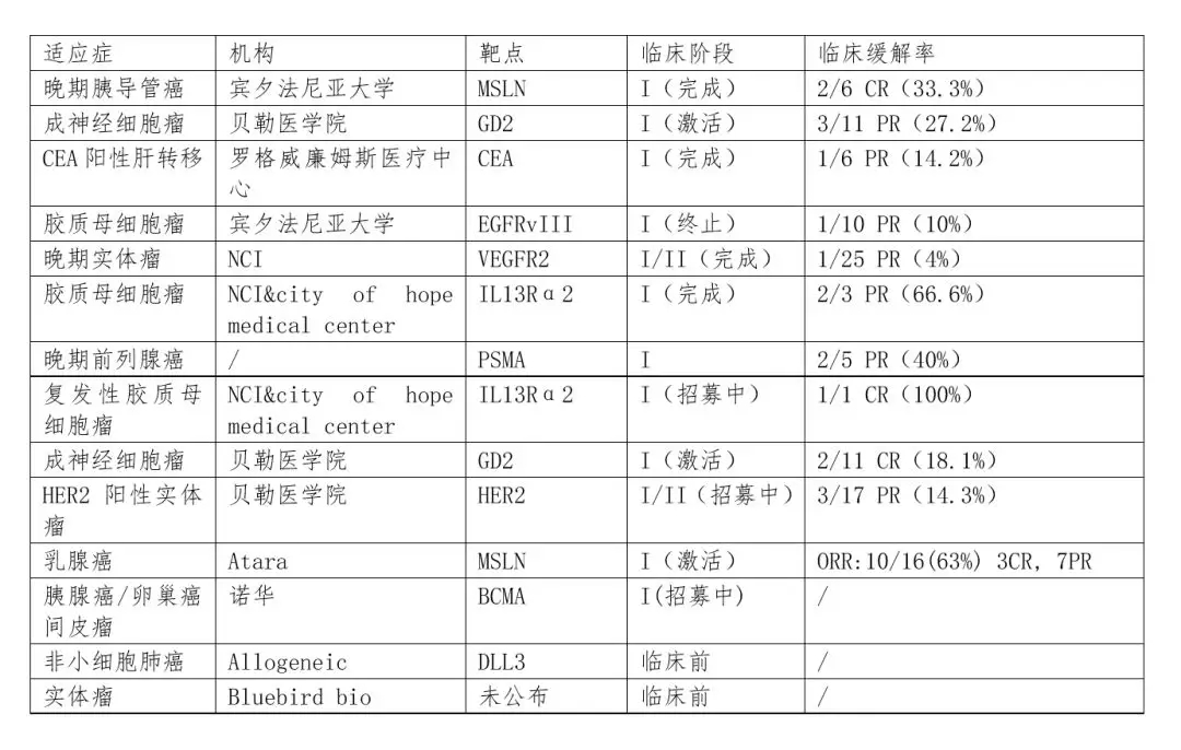 表5 國際上獲得實體瘤CAR-T臨床批件的機構