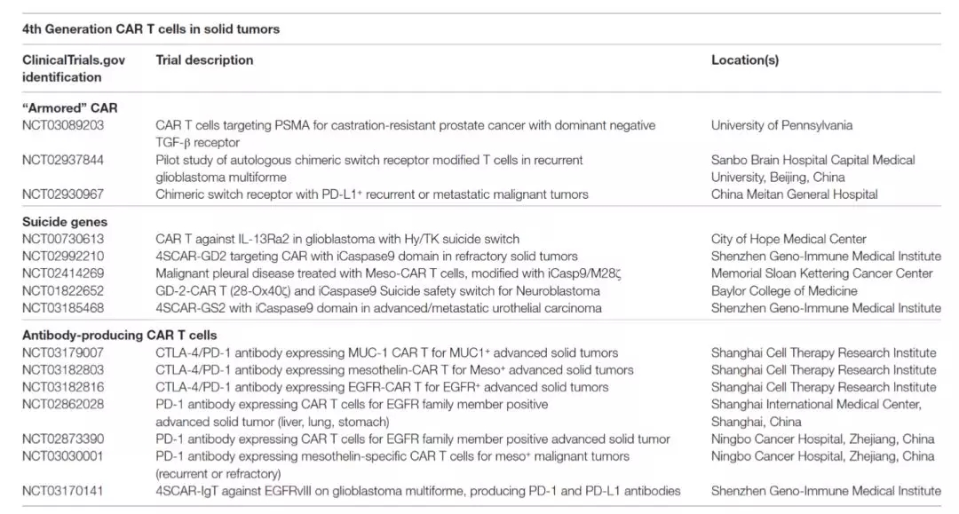 表4 采用不同策略下的實體瘤CAR-T臨床試驗