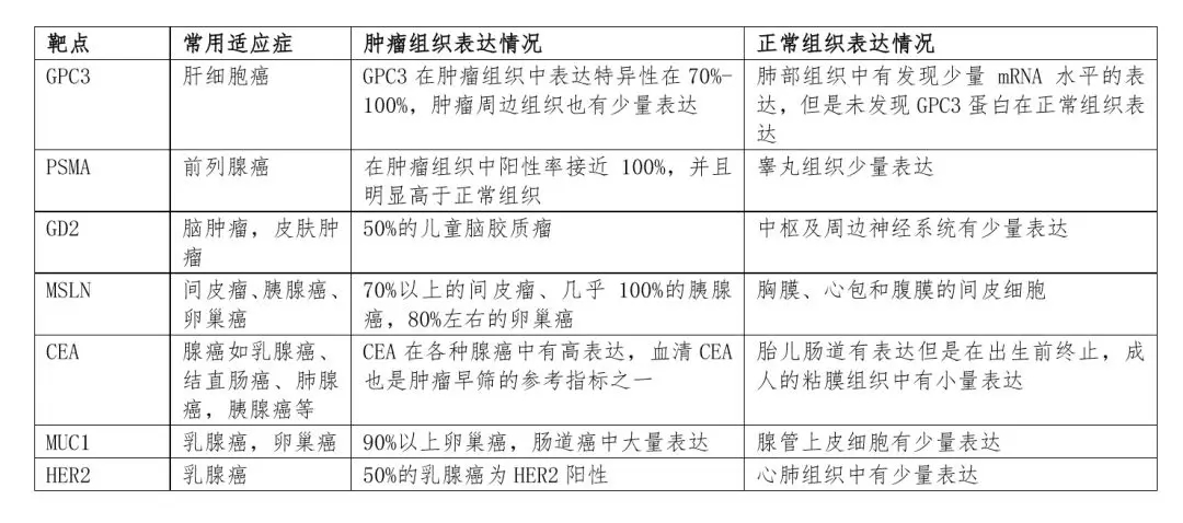 從上表來看,除了GPC3之外,其他蛋白抗原都存在與人體正常組織中,因此控制CAR-T的on-target毒性成為非常關鍵的因素。根據臨床推進來看,可以關注MSLN,GPC3以及新型腫瘤特異性靶點在臨床上的進展。