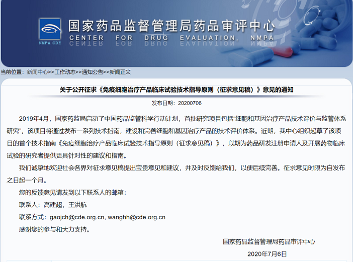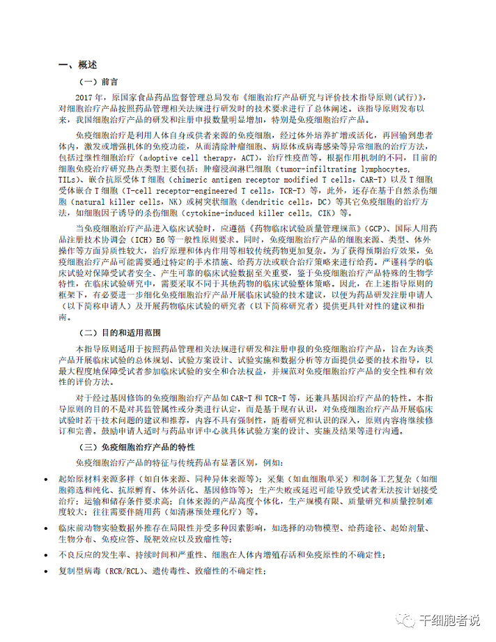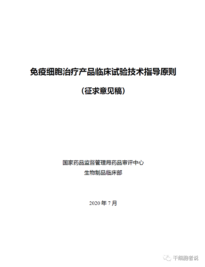 《免疫細(xì)胞治療產(chǎn)品臨床試驗(yàn)技術(shù)指導(dǎo)原則(征求意見稿)》起草說明