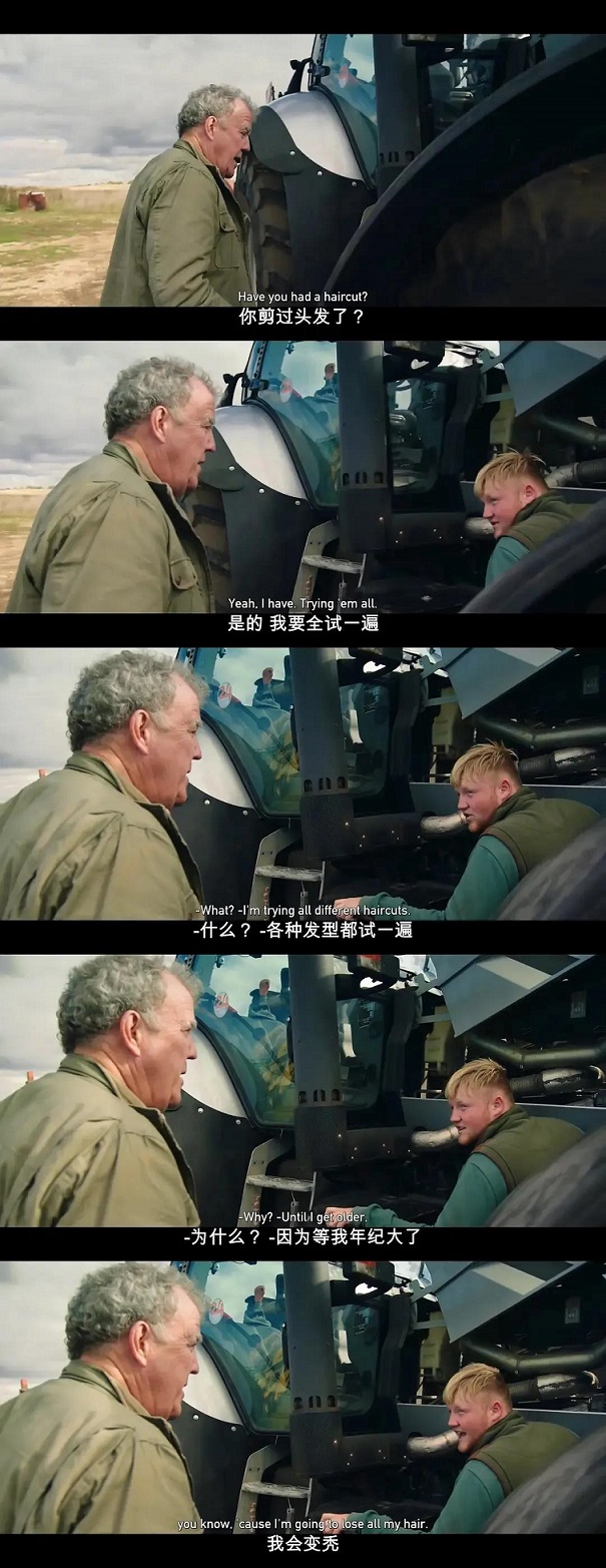 前段時間看了個紀錄片《克拉克森的農場》,(發(fā)際線告危)的克拉克森和年輕農夫小伙的一段對話給我笑壞了。